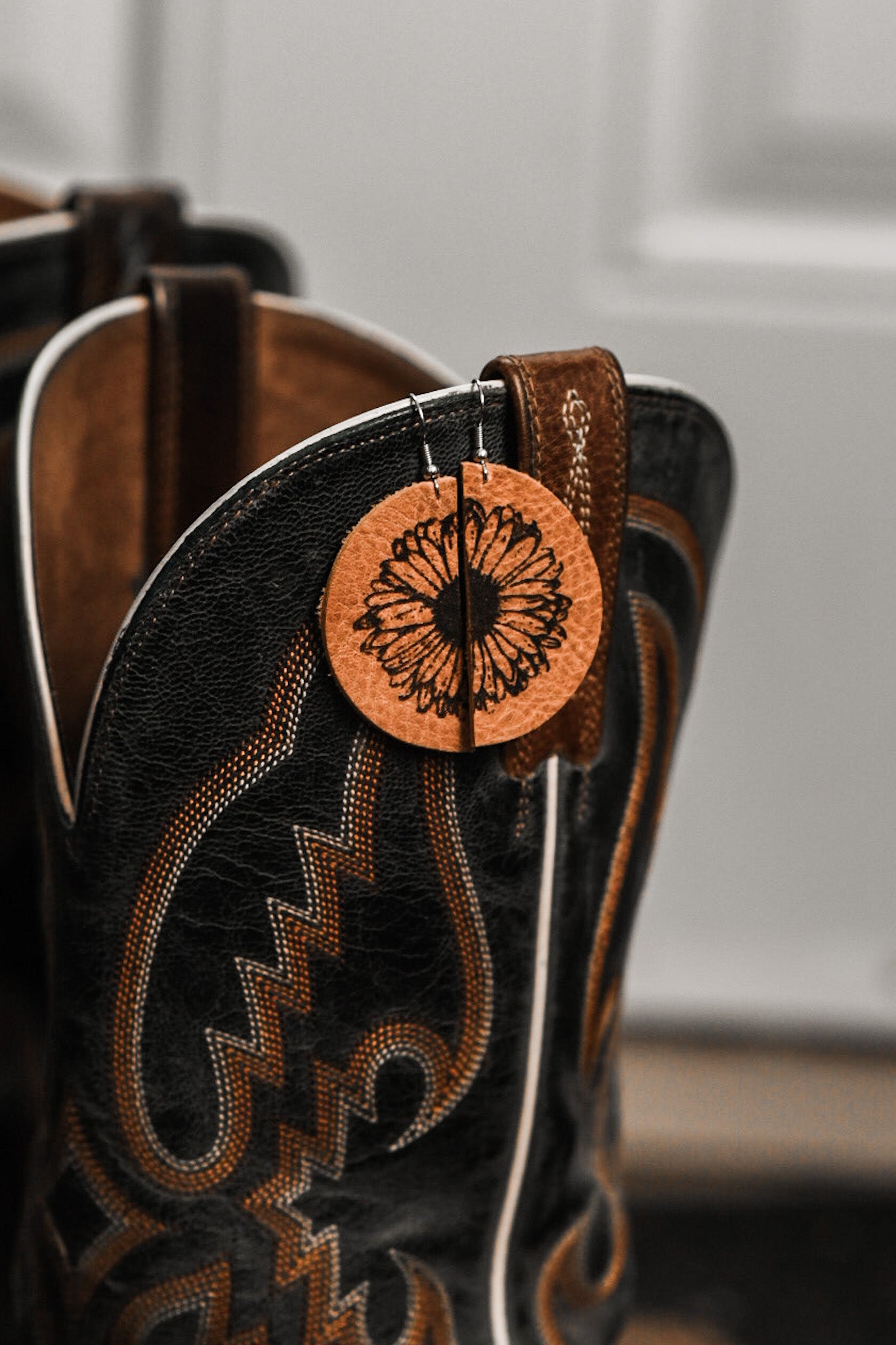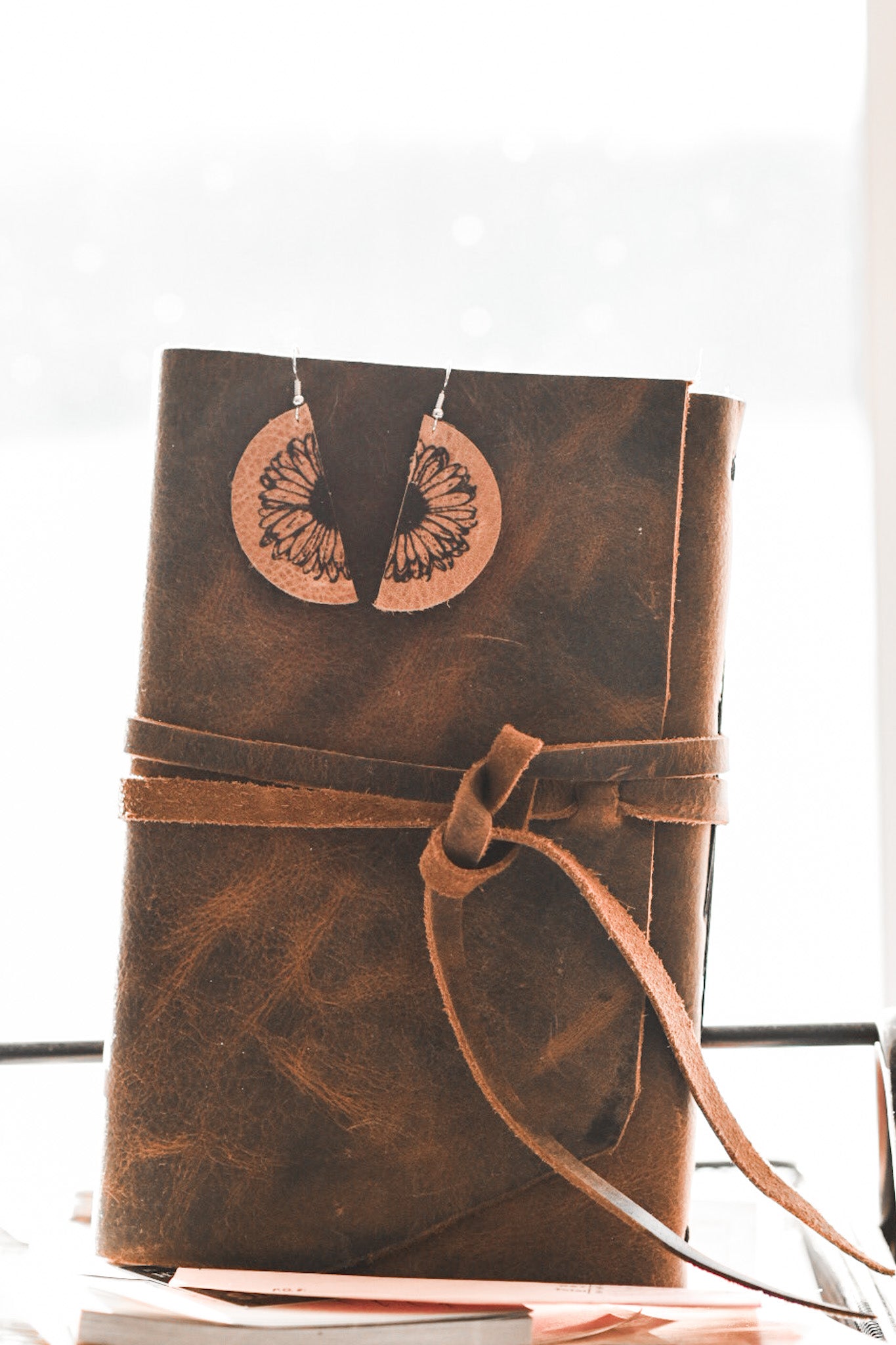 Each earring is 2” tall x 1” wide made with soft textured tan coloured leather. The hook adds an extra half inch of length.