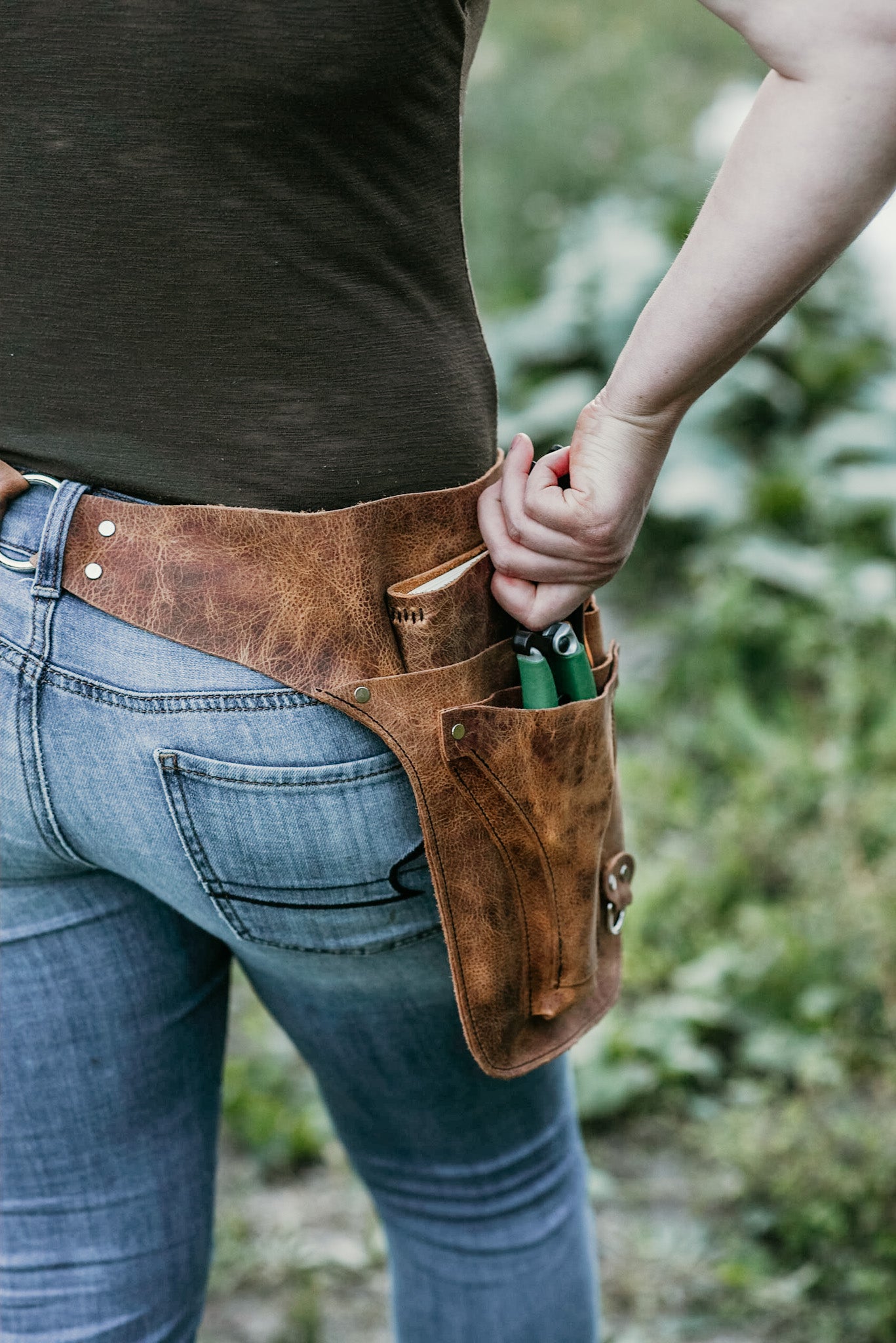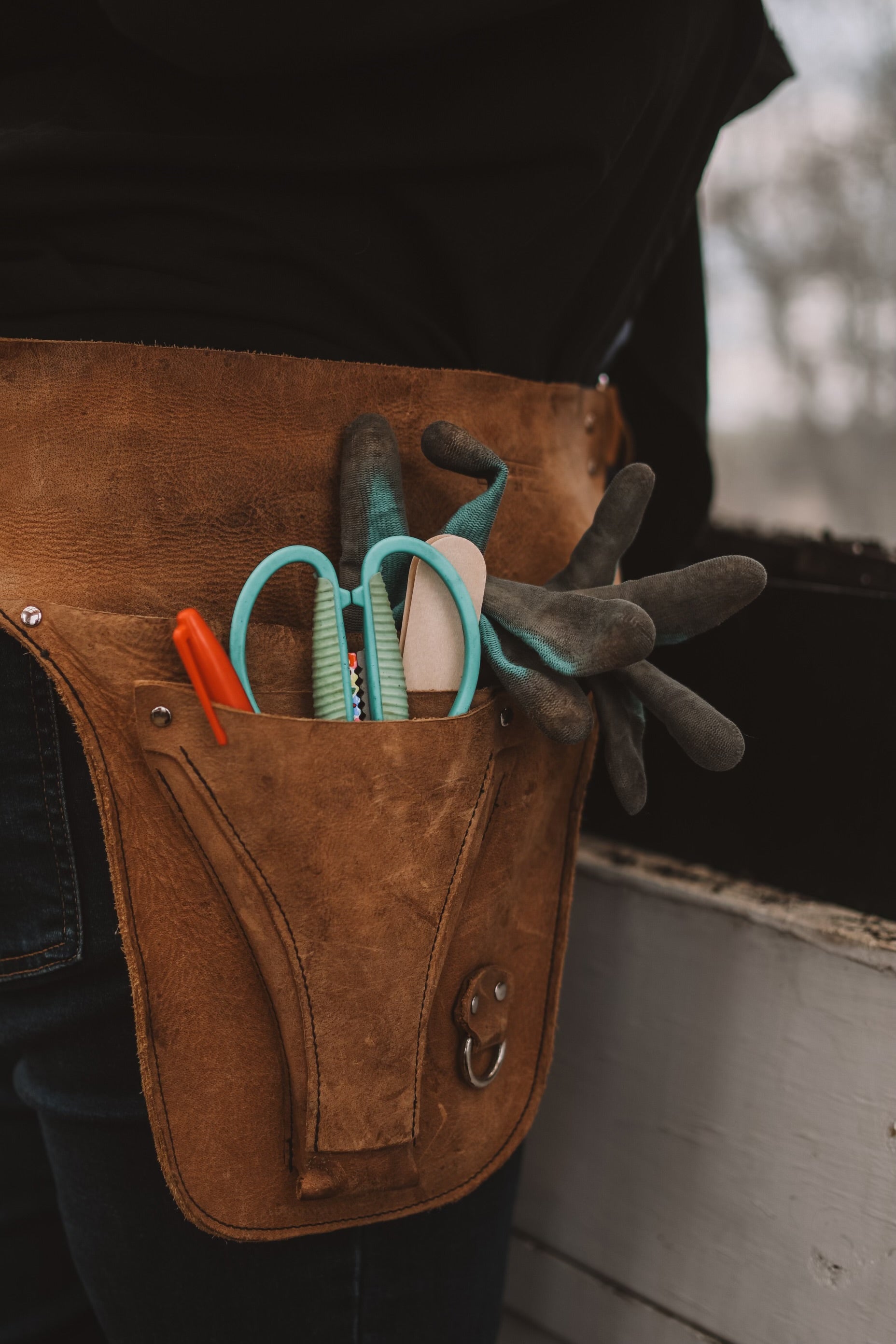 Leather pouch/holster for florists, flower farmers and gardeners. A handy way to keep track of snips and tools.. as well as snacks and seeds and other miscellaneous items!