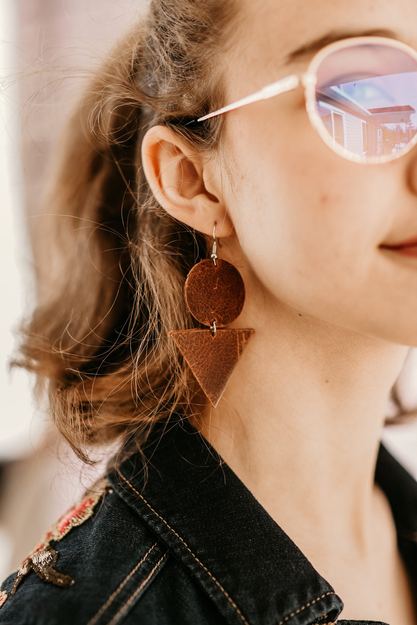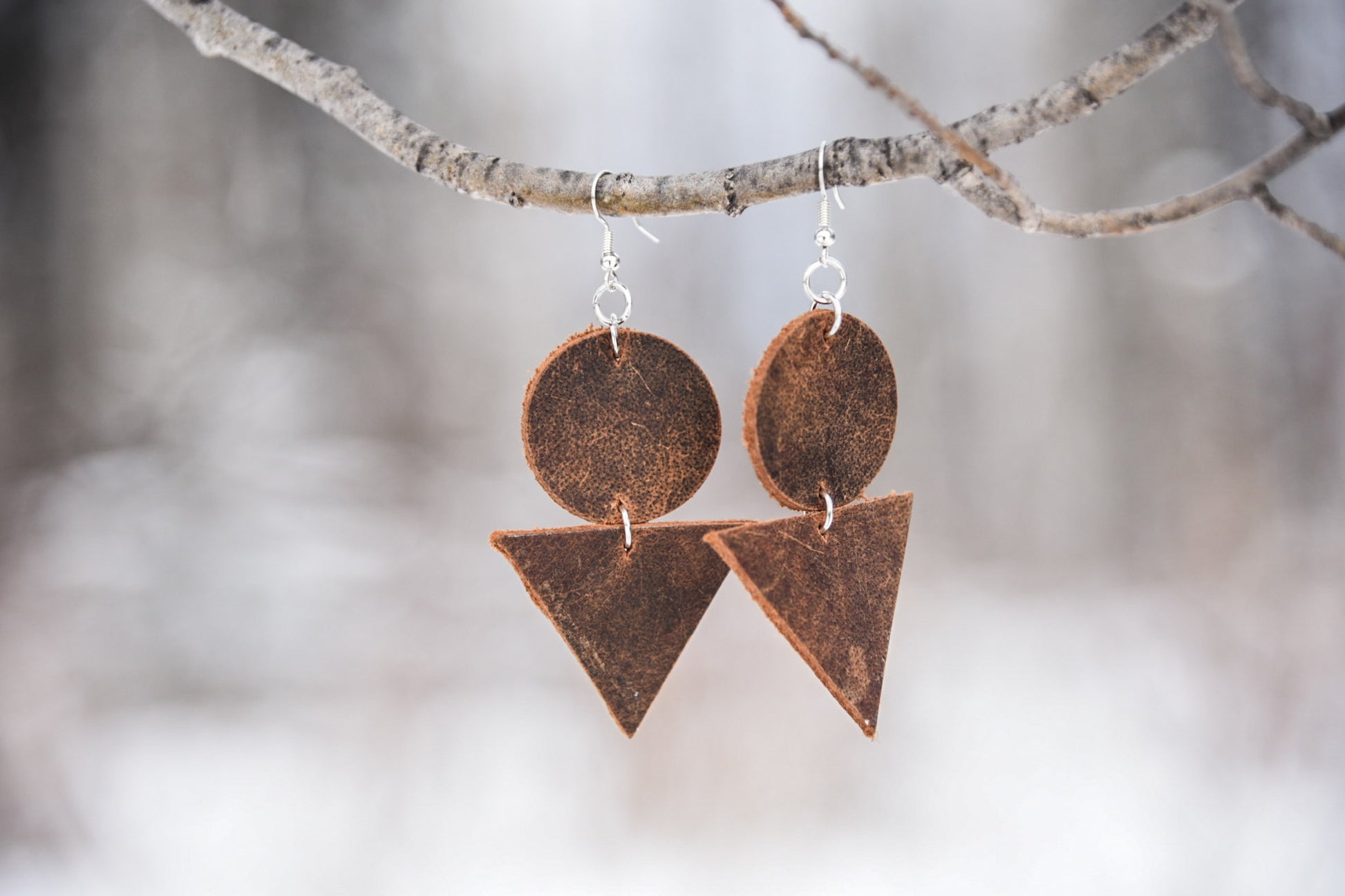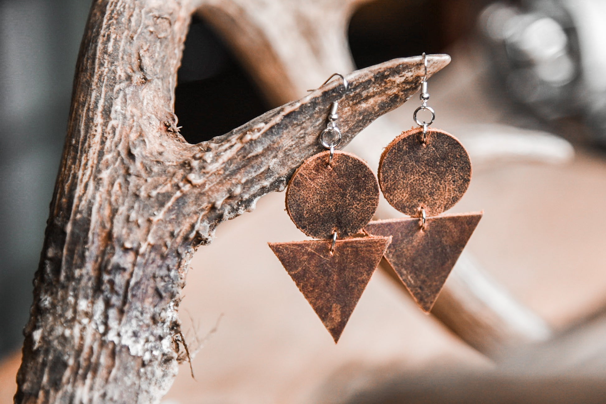 Earrings for the rustic western boho babe! Made of genuine leather and 2.5” long by a bit over 1.5” at the widest point, excluding the hooks which are nickel free. Colours may vary slightly as it is a natural product.
