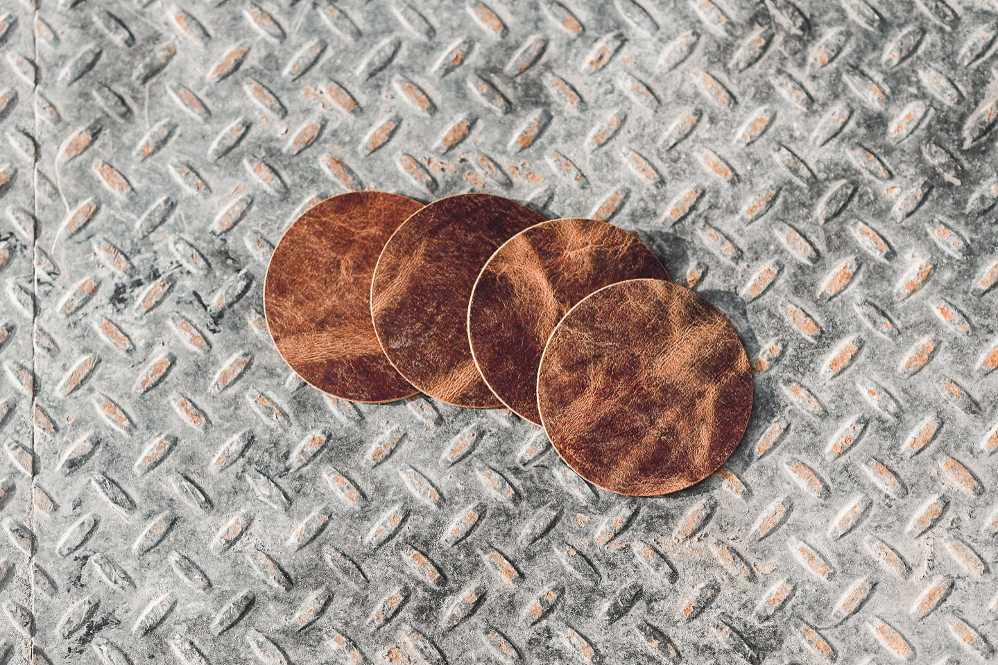 Set of 4 leather rustic style coasters made with genuine water buffalo hide. 3.5” diameter and soft leather approximately 3mm thick. Because of the nature of the leather each coaster will have its own unique markings and colouring.