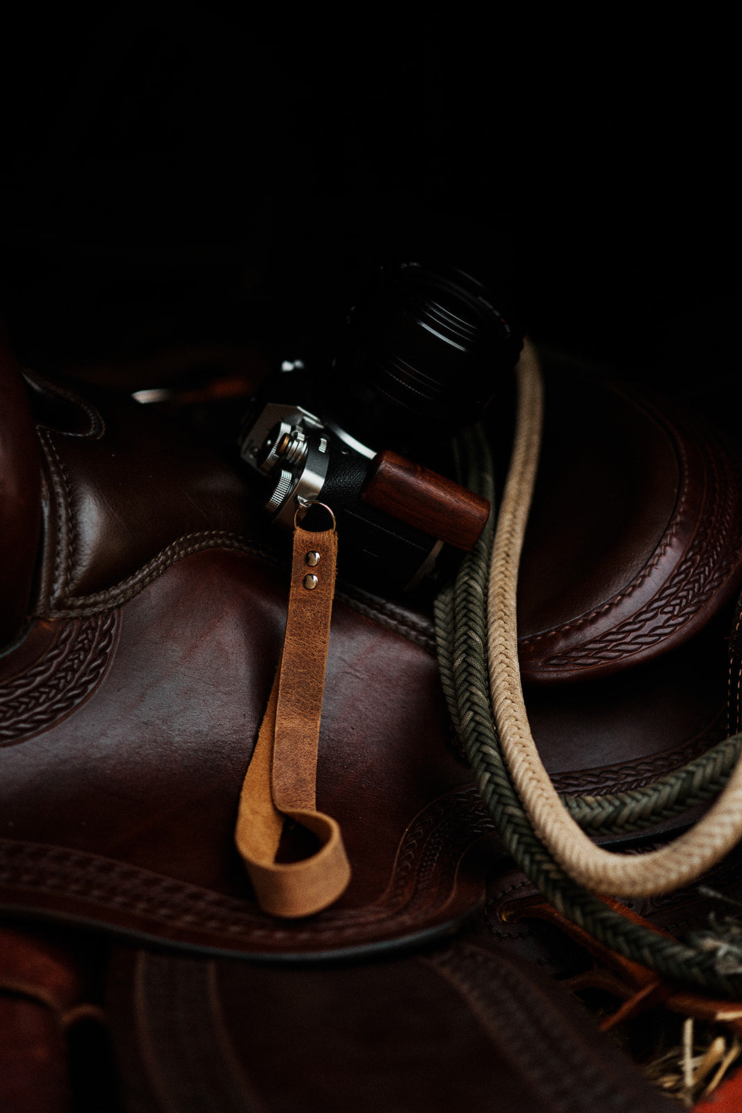As requested and designed by the man himself.. this Trent Schlamp signature camera strap is made with brown rustic looking genuine leather and is light weight with a small ring to not get in the way.. and double riveted so you can trust it with your camera!